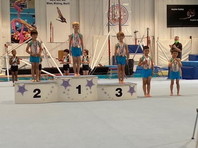 My brother and I competed in Heathrow Gymnastics Club Championship in July 2021. We both used lots of different apparatus like the floor, vault and bars. It was his first club champs and my third so he was really nervous beforehand but he did really well and came fifth. I came first and I was really proud, my best score was on my floor routine.