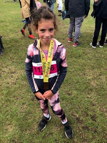Saturday I run my first Mini Mile in the family run. My daddy run with me and we did very well, but I beat him and finished before him. I arrived 7/85 girls. I am very proud of myself and all the friends who took part.
