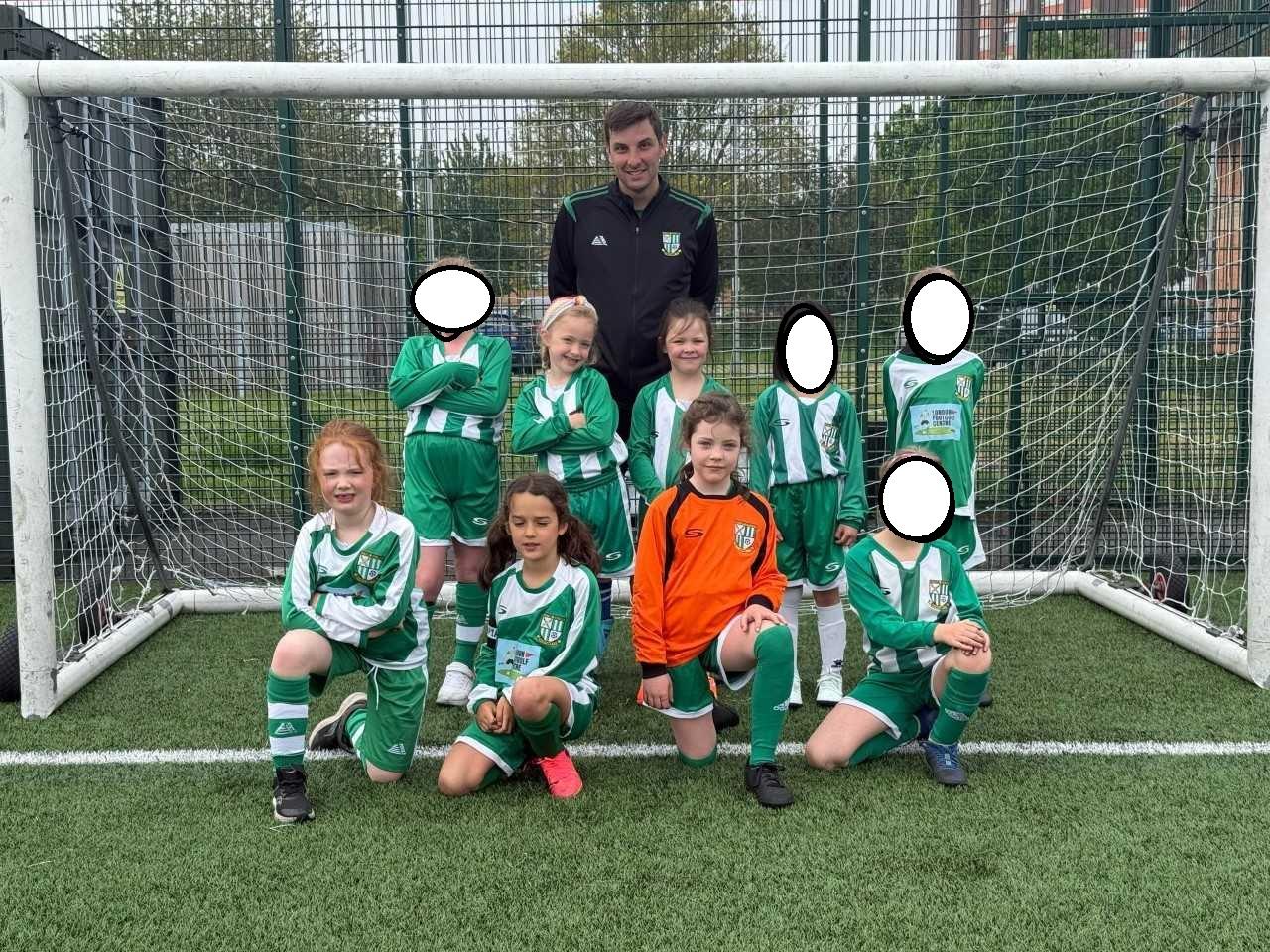 Emily, Phoebe, Stella, Ivy and Ellery all play for Whistlers Under 8's football team. They train every Saturday and work hard to improve. They recently won their first match 3-2. Well done girls!