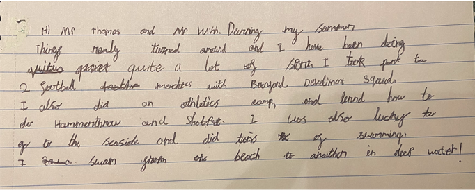 I have attended an Easter Football Camp. I have really enjoyed learning new skills and challenging myself. At the end of the camp, my team won the tournament. I did few good saves and tackles. I am proud of myself.