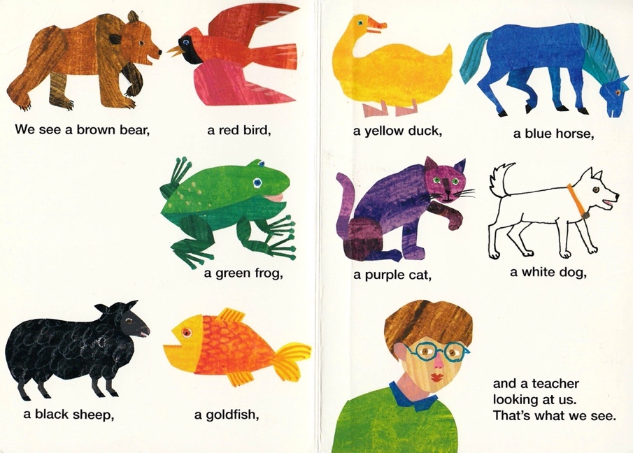The children will discuss the question in the story ‘What do you see?’ and write about what they see: ‘I see a …………. looking at me.’ This gives the children the opportunity to write about things they like and innovate the text. This is where they change a detail in the text. For example: